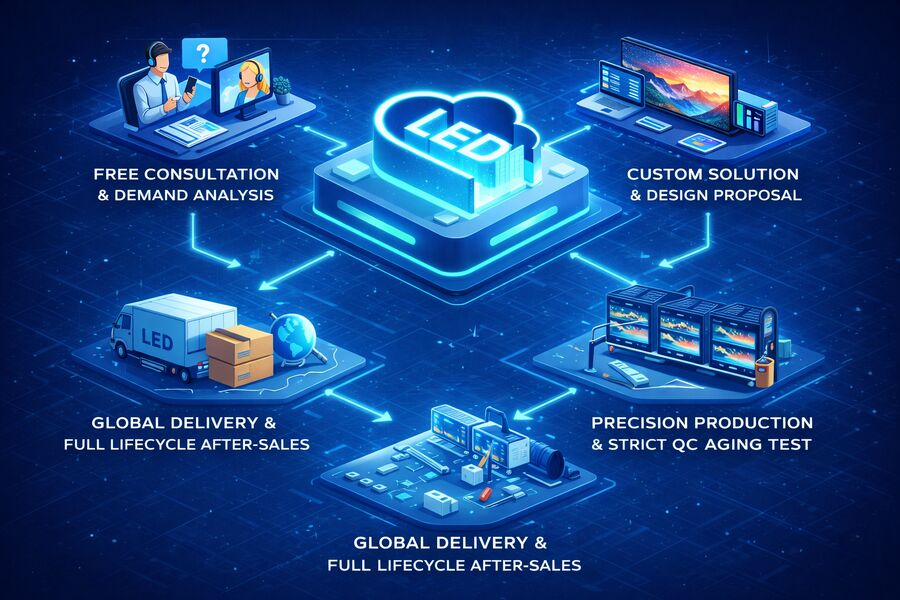Στην CHEERLED, κάθε μονάδα LED και κάθε ντουλάπι υποβάλλονται σε αυστηρό πολυεπίπεδο έλεγχο και δοκιμή γήρανσης τουλάχιστον 48 ωρών πριν από την αποστολή. Εφαρμόζουμε τυποποιημένο ποιοτικό έλεγχο από τους ελέγχους εισερχόμενων πρώτων υλών έως την τελική γήρανση, διασφαλίζοντας σταθερή απόδοση, ομοιόμορφο χρώμα και μεγάλη διάρκεια ζωής για παγκόσμια έργα.